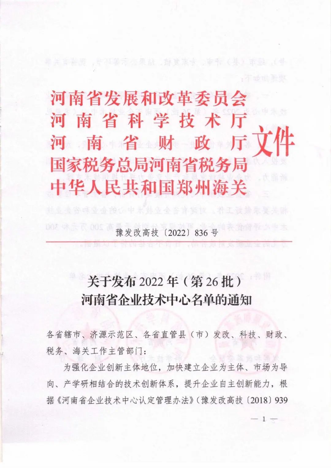 【查看詳情】近日,河南省發(fā)改委、科技廳等五個權(quán)威部門聯(lián)合發(fā)文,公司企業(yè)技術(shù)中心獲批為 河南省企業(yè)技術(shù)中心,是繼2021年度獲批信陽市施工技術(shù)工程